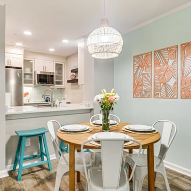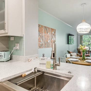 Modern kitchen and comfortable dining for six